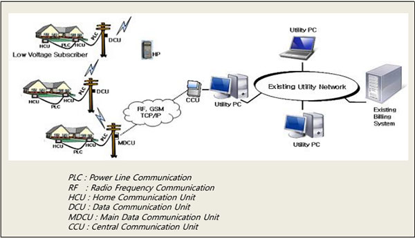 Hệ thống đọc công tơ EMIC về máy chủ CMIS 2.0 của Công ty Điện lực thông qua bộ thu thập dữ liệu tập trung (CCU)và các bộ thu thập dữ liệu tại cột điện (DCU) qua sóng radio (RF).