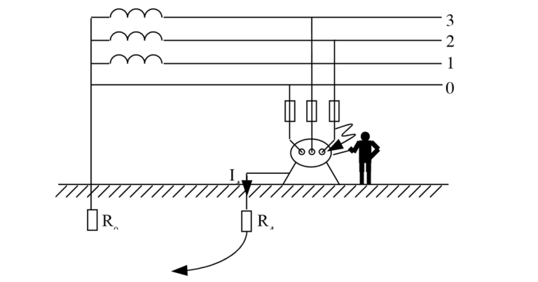 Khi có sự chạm vỏ của 1 pha do cách điện bị hư hỏng sẽ có dòng điện qua vỏ thiết bị đi vào đất với trị số: